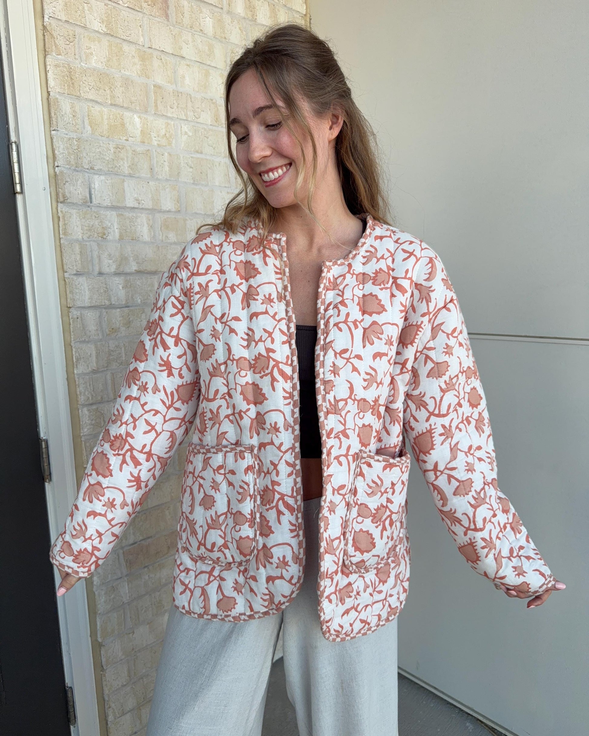 Made from an upcycled quilt and thoughtfully reconstructed into a wearable, cozy layer, this quilted jacket is soft, oversized, and impossible to replicate.